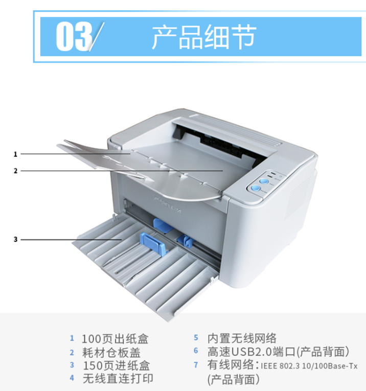 參數(shù) [品牌] 奔圖 [型號] P2535NW 商用保密黑白A4無線wifi激光打印機(jī)